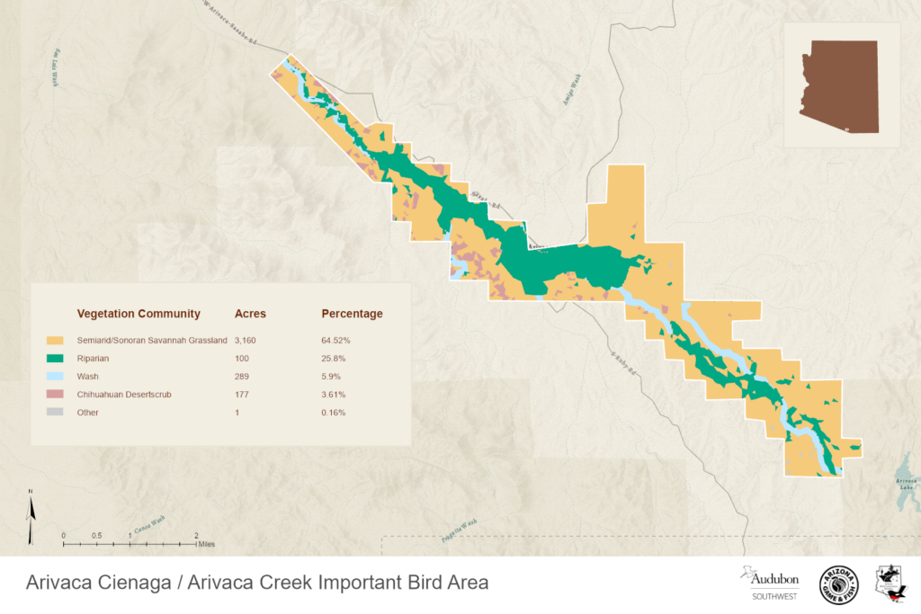 For an interactive map and habitat and land ownership analysis of this IBA visit the National Audubon IBA Map and select “Arizona” and then select this IBA