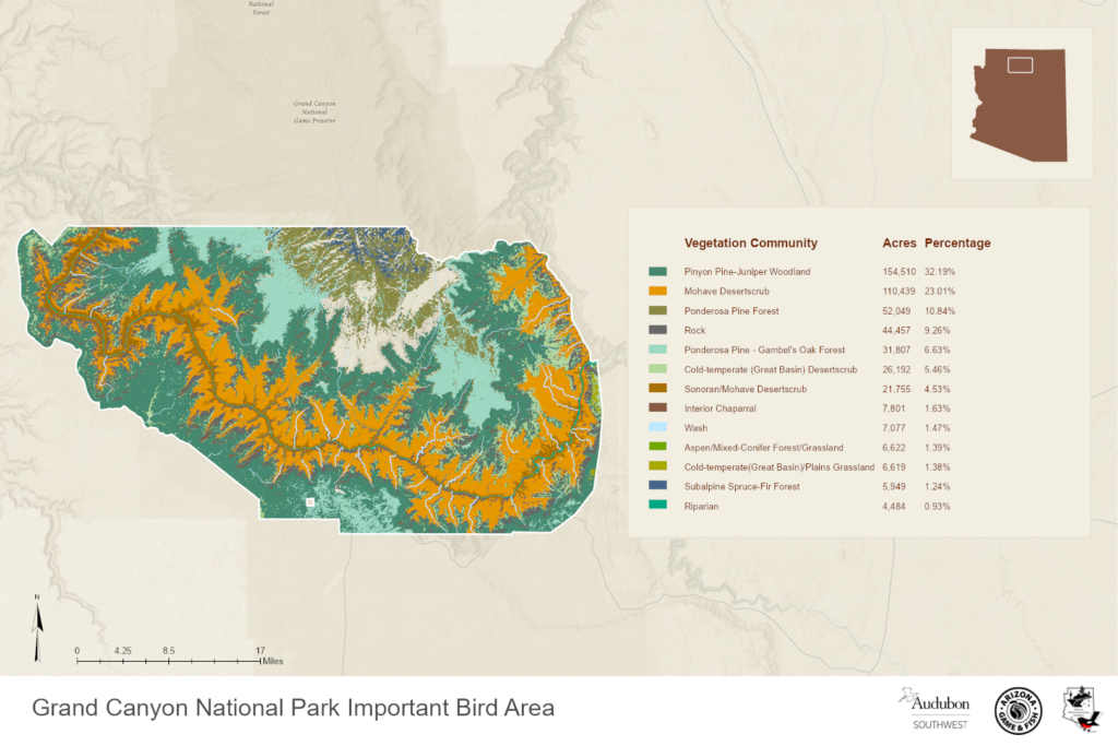 Site Description: This IBA includes the entire Grand Canyon National Park and two hawk watch points on the south rim of the Grand Canyon, Lipan and Yaki Points.