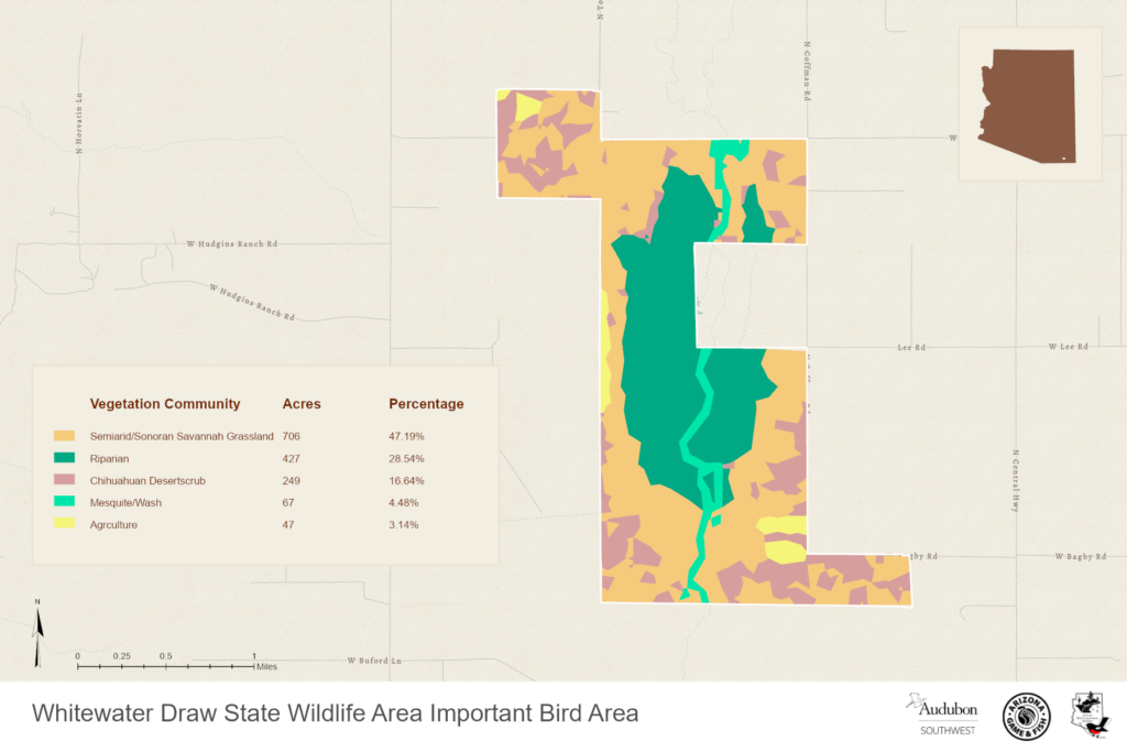 For an interactive map and habitat and land ownership analysis of this IBA visit the National Audubon IBA Map and select “Arizona” and then select this IBA